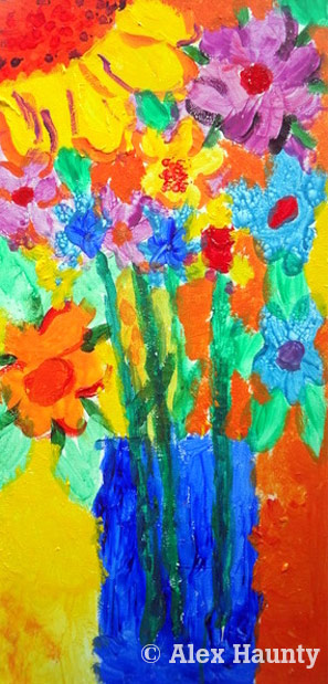Cathy Ostrom came to my music soireé and said to my mom " I think Alex could do something like this with art. I would like to work with him to do an art show. " My mom said "Well, I’m not sure he can paint but he can have fun learning, just don't say anything to him about an art show!”
