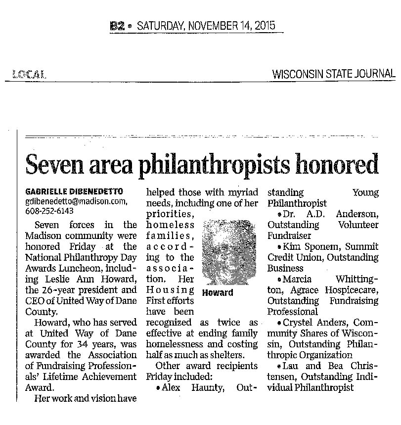 11/14/15 - Seven Area Philanthropists Honored, Wisconsin State Journal